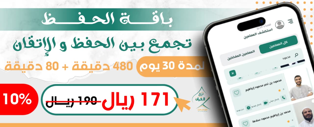 ابدأ حفظ القرآن بإتقان ويسر. تمنحك “باقة الحفظ” من تلقي معلماً خاصاً وخطة مخصصة، لتجمع بين أصالة التلقي وسهولة التقنية. كل ما تحتاجه في مكان واحد “تلقي القرآن..