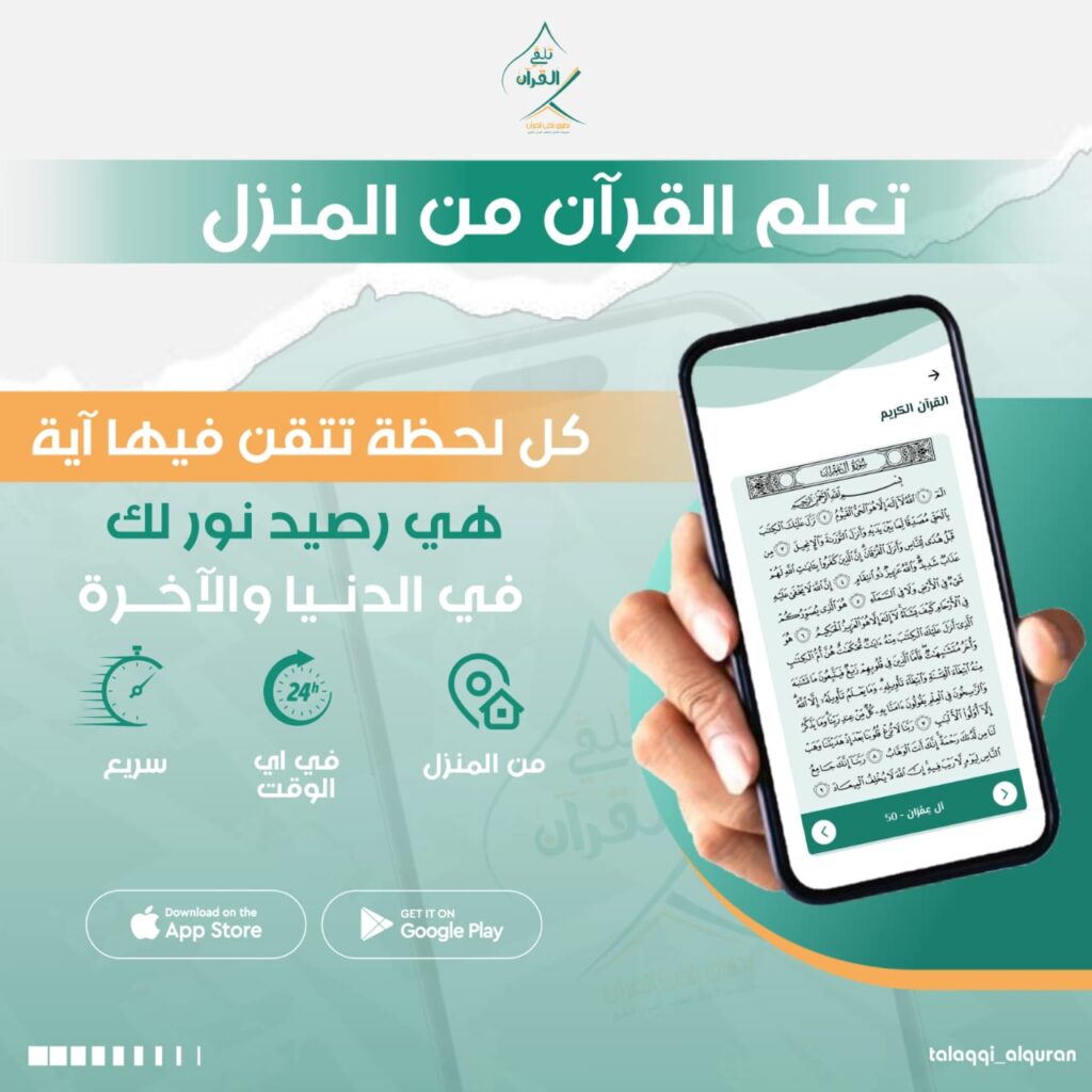 تطبيق “تلقى القرآن” هو أفضل تطبيق تفاعلي عبر الإنترنت مصمم لتعليم وحفظ القرآن الكريم بأسلوب التعليم التفاعلي المباشر. يتيح لك التطبيق الاستماع والقراءة للآيات على مقرئين مجازين، وتكرارها حتى الإتقان، مع إمكانية المتابعة الفردية والمباشرة مع شيخ أو معلم. كما يوفر أدوات ذكية لمراجعة الحفظ، وتتبع التقدم وتشجيع الاستمرارية.